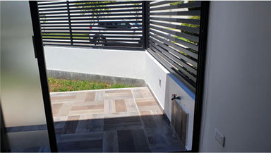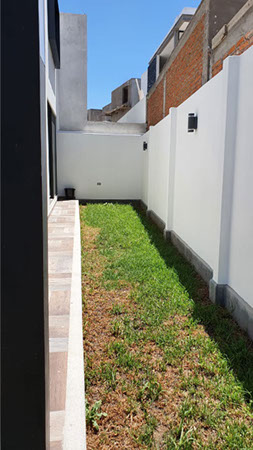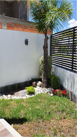 Jardin lateral y terraza.